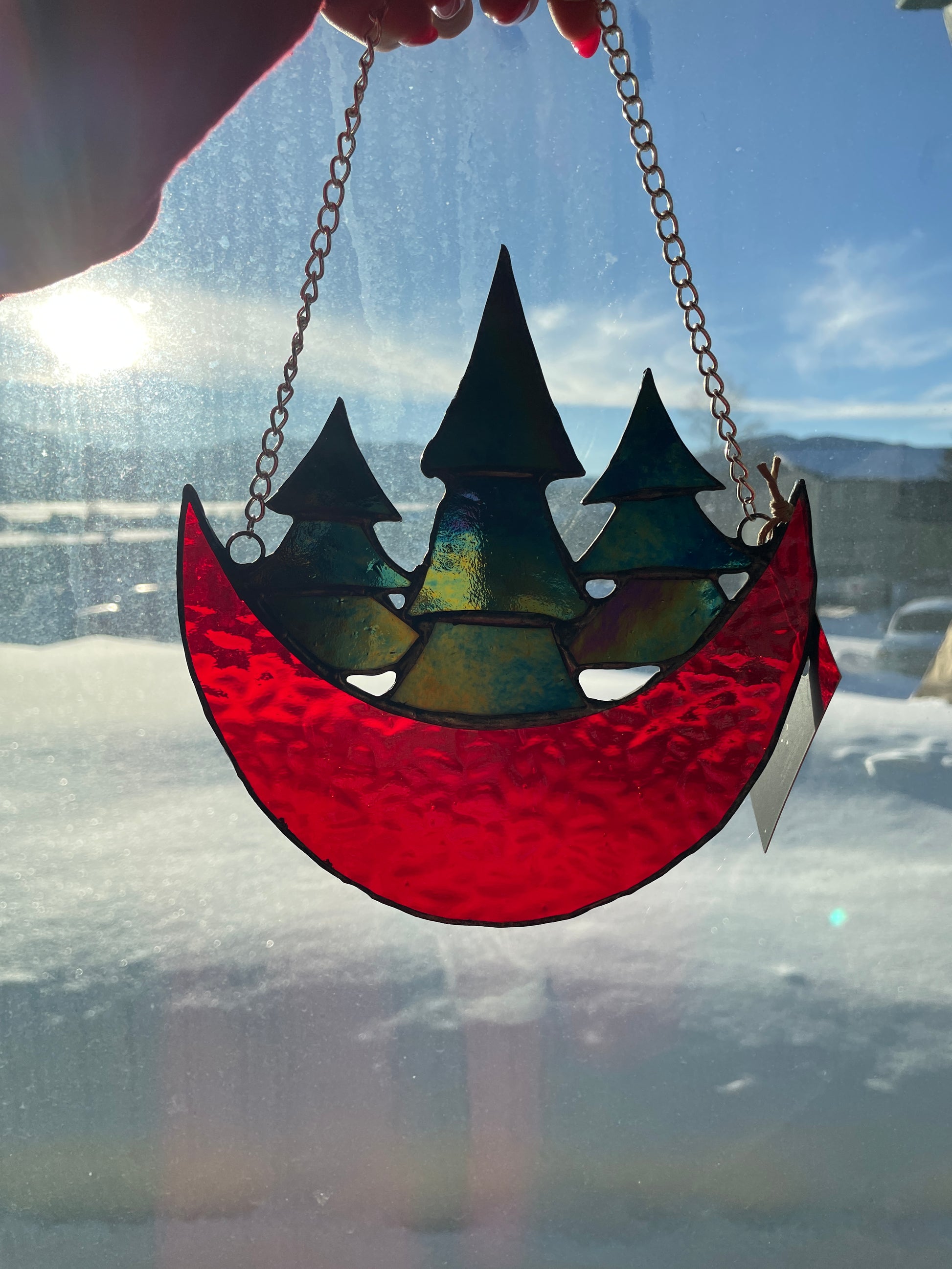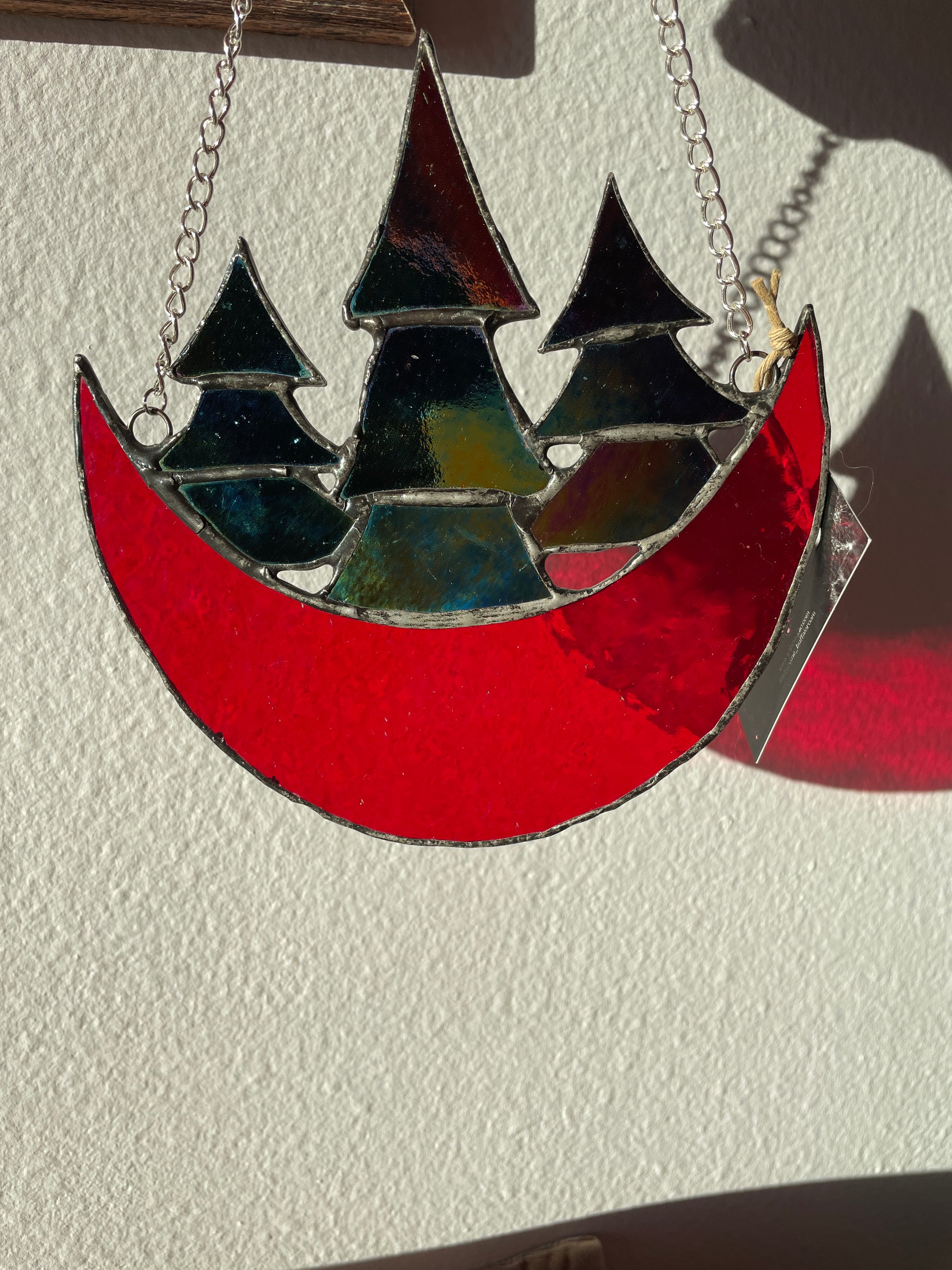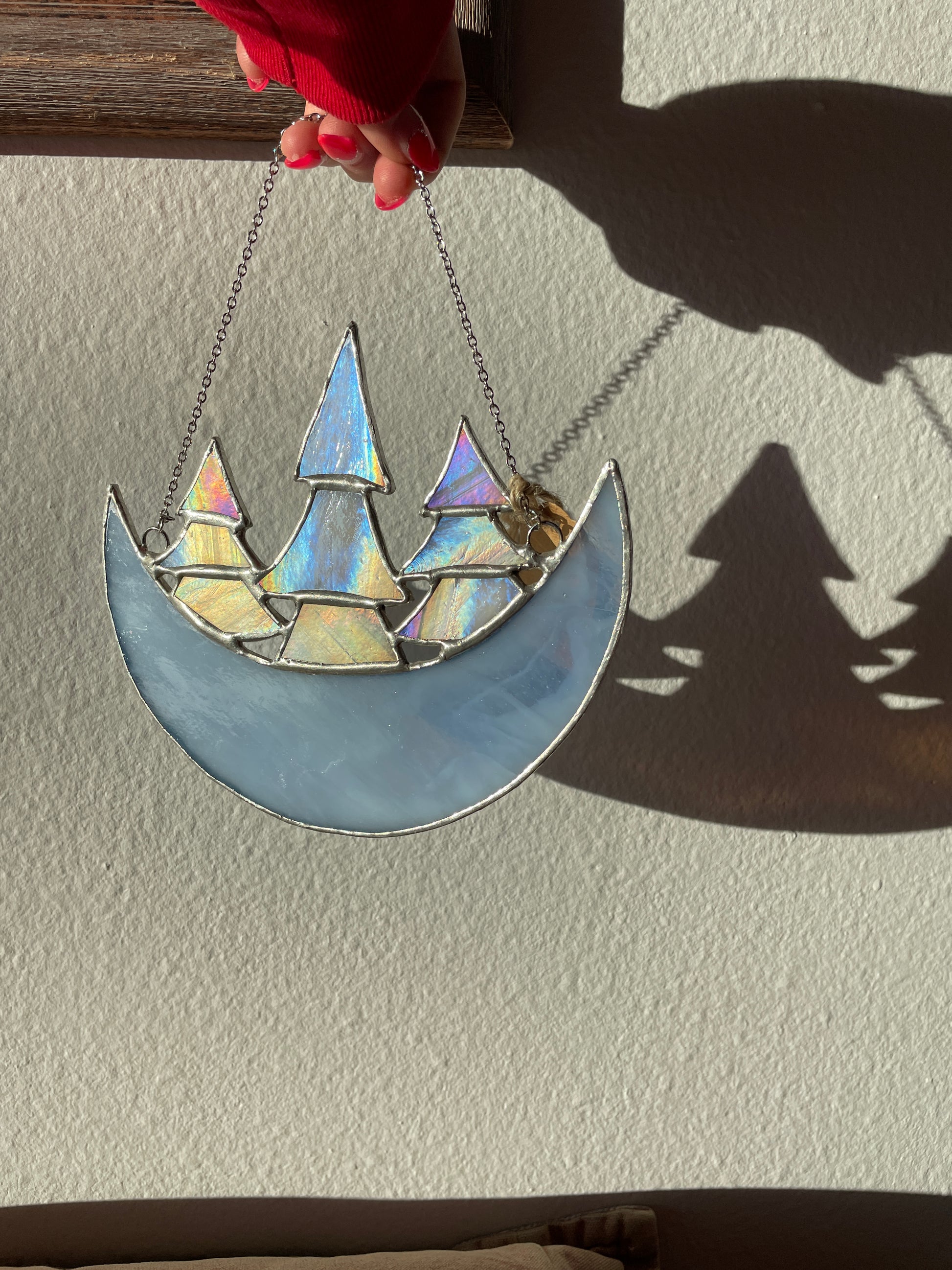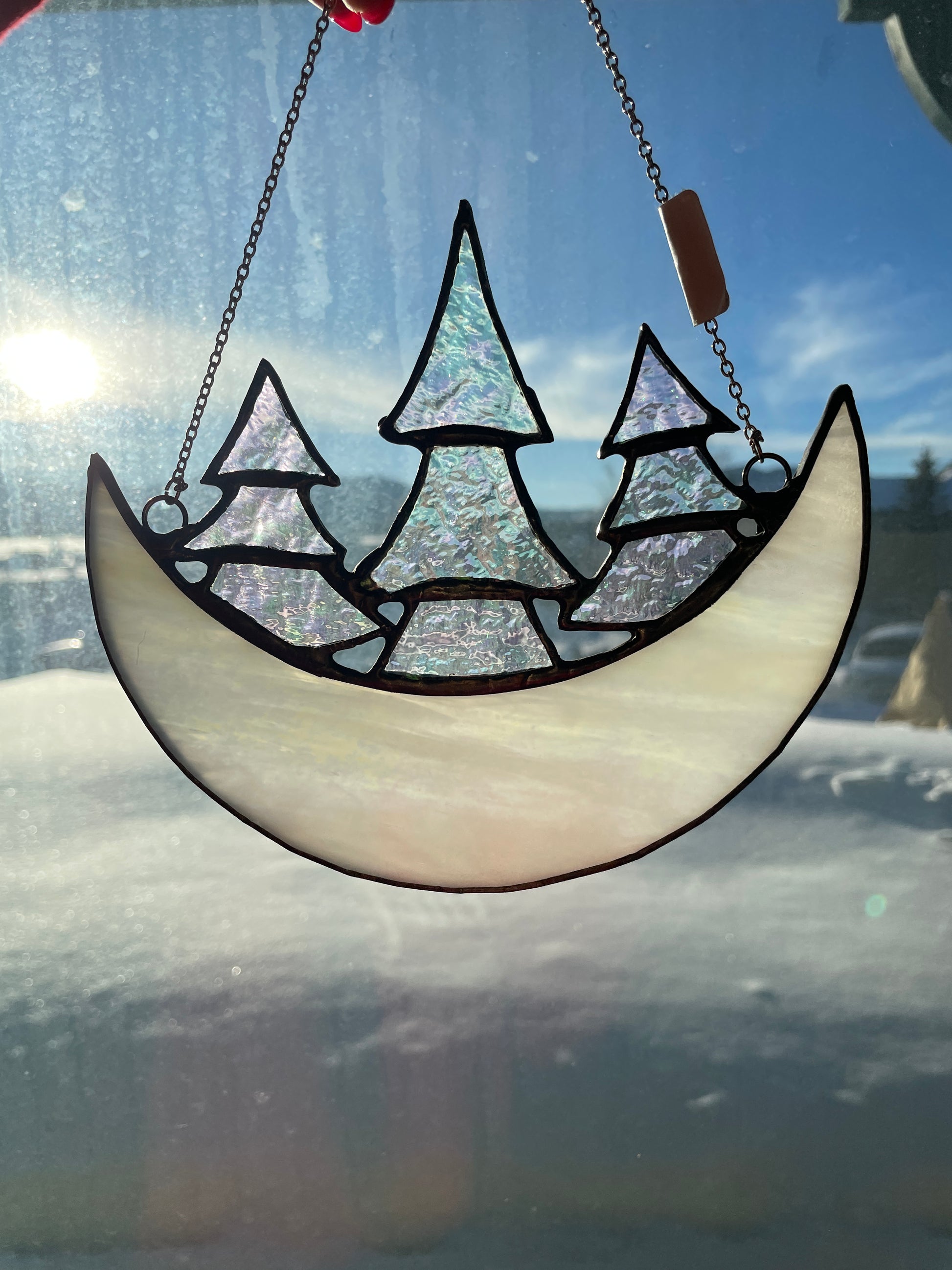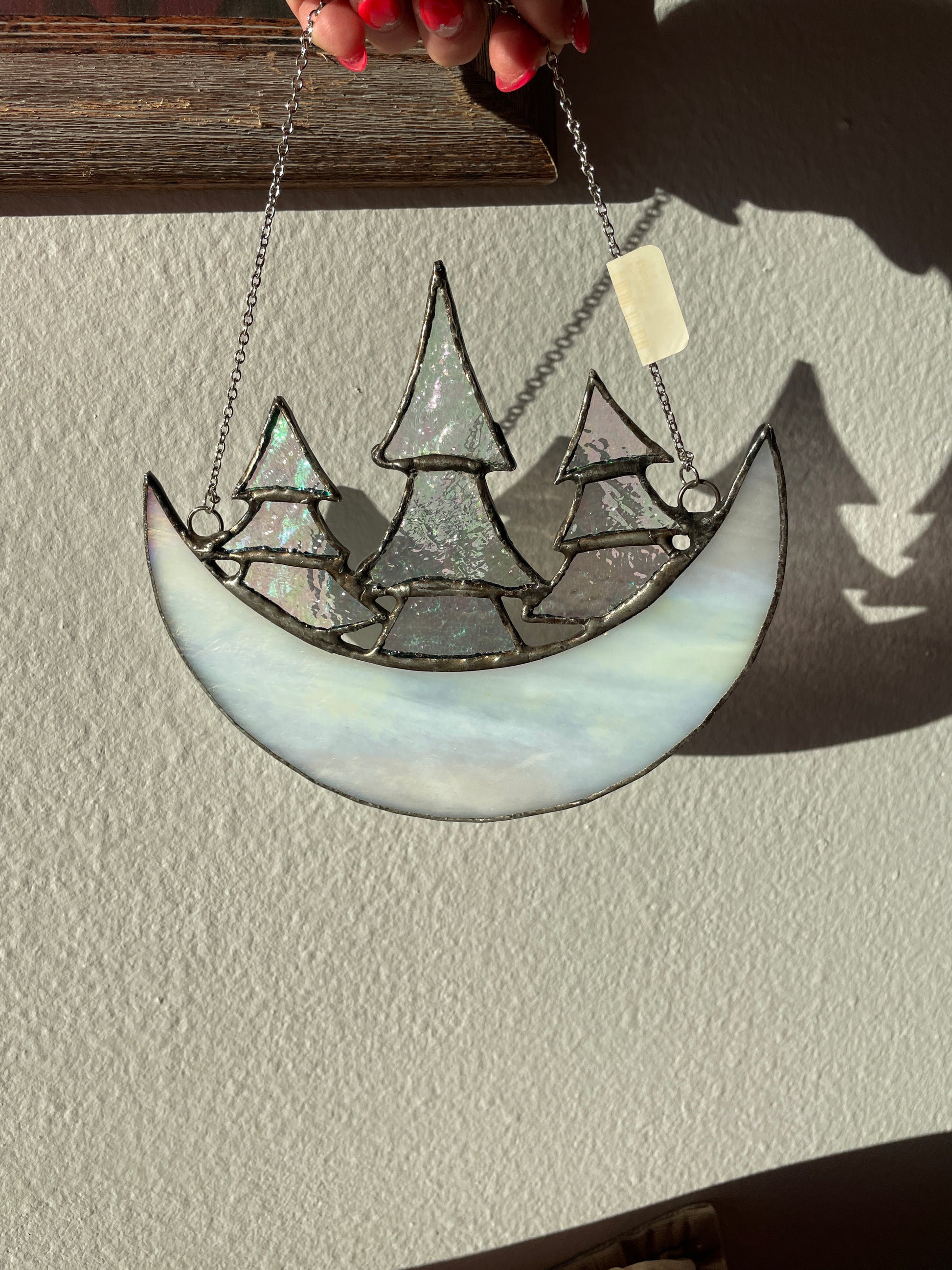 Little bit of moon magic, little bit of forest feeling. Featuring both opaque & clear glass, perfect for a wall or window.